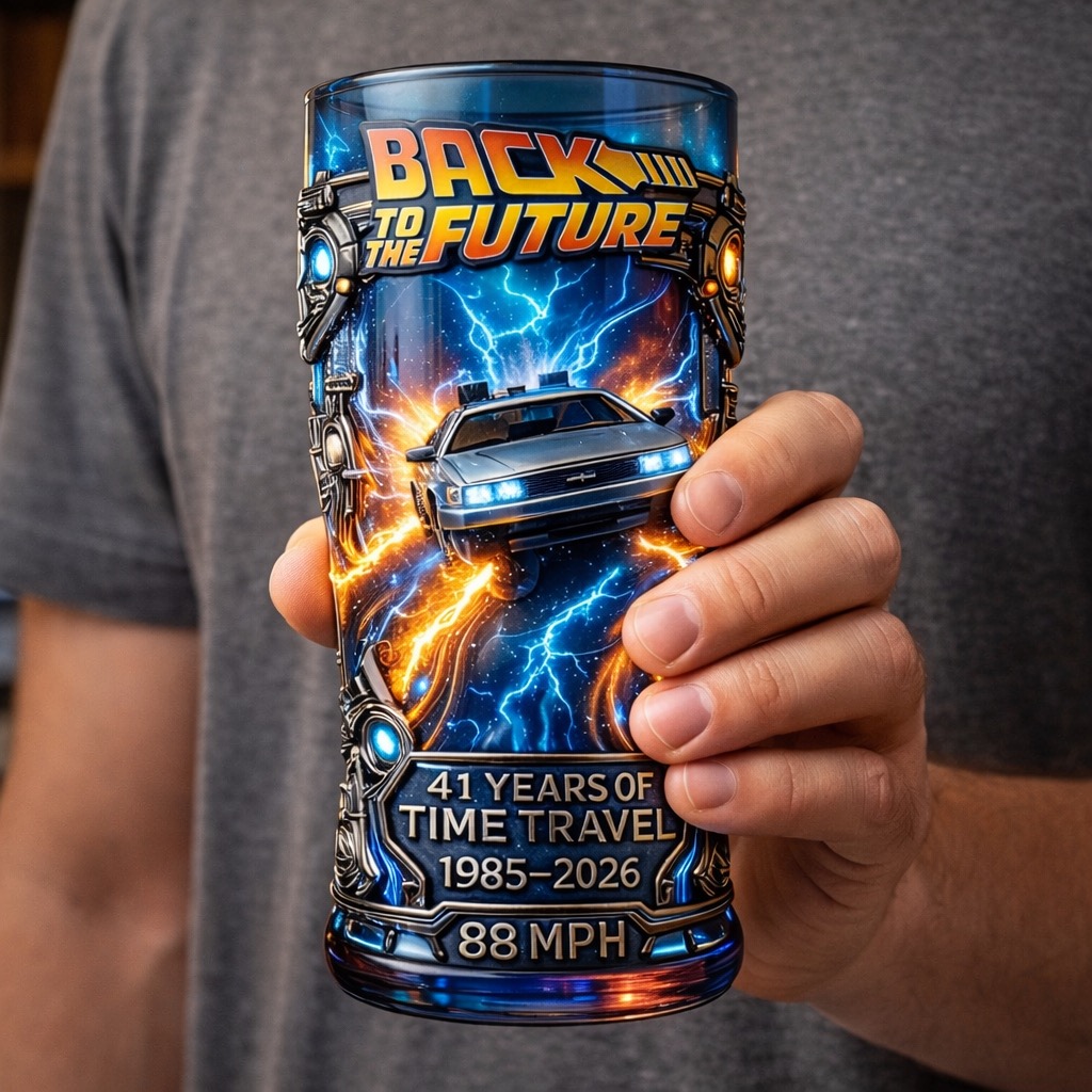 1 × Zurück in die Zukunft 1985-2026 41. Jahrestag 3D-Relief Pint Glas