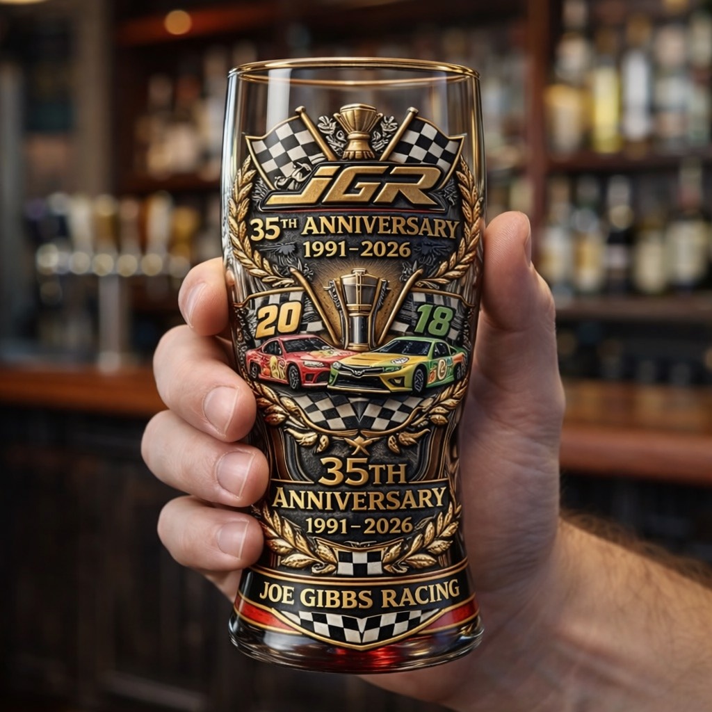 🏁Feiern Sie 35 Jahre Racing Legacy - JGR 1991-2026 3D Relief Pint Glass🏆
