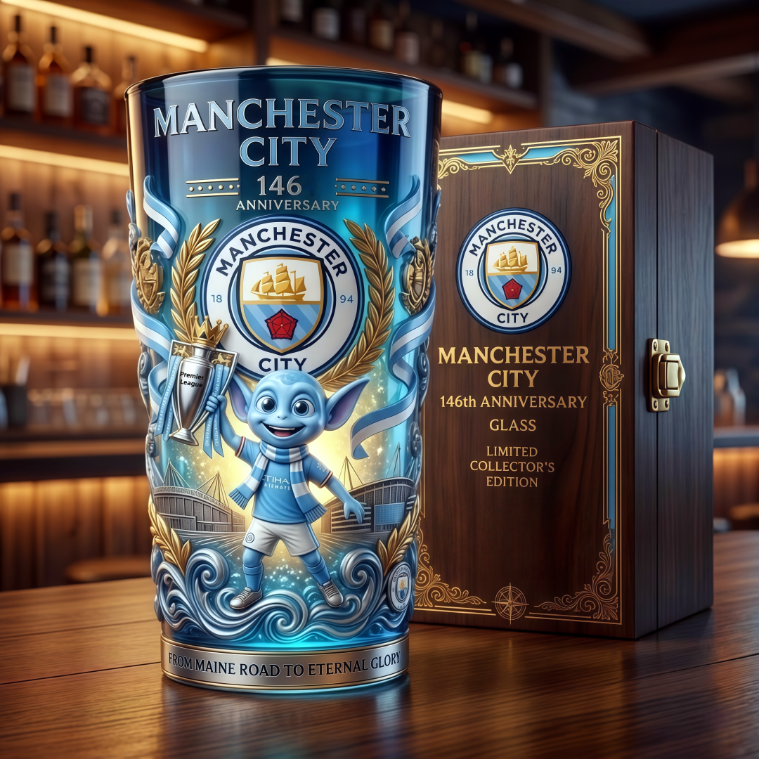 🔵Feiern Sie das Erbe eines der größten Fußball vereine mit dem atember aub enden Manchester City 146th Anniversary Collector's Glass, einem Premium-Sammlerstück, das die Reise von der Maine Road zum ewigen Ruhm ehrt!
