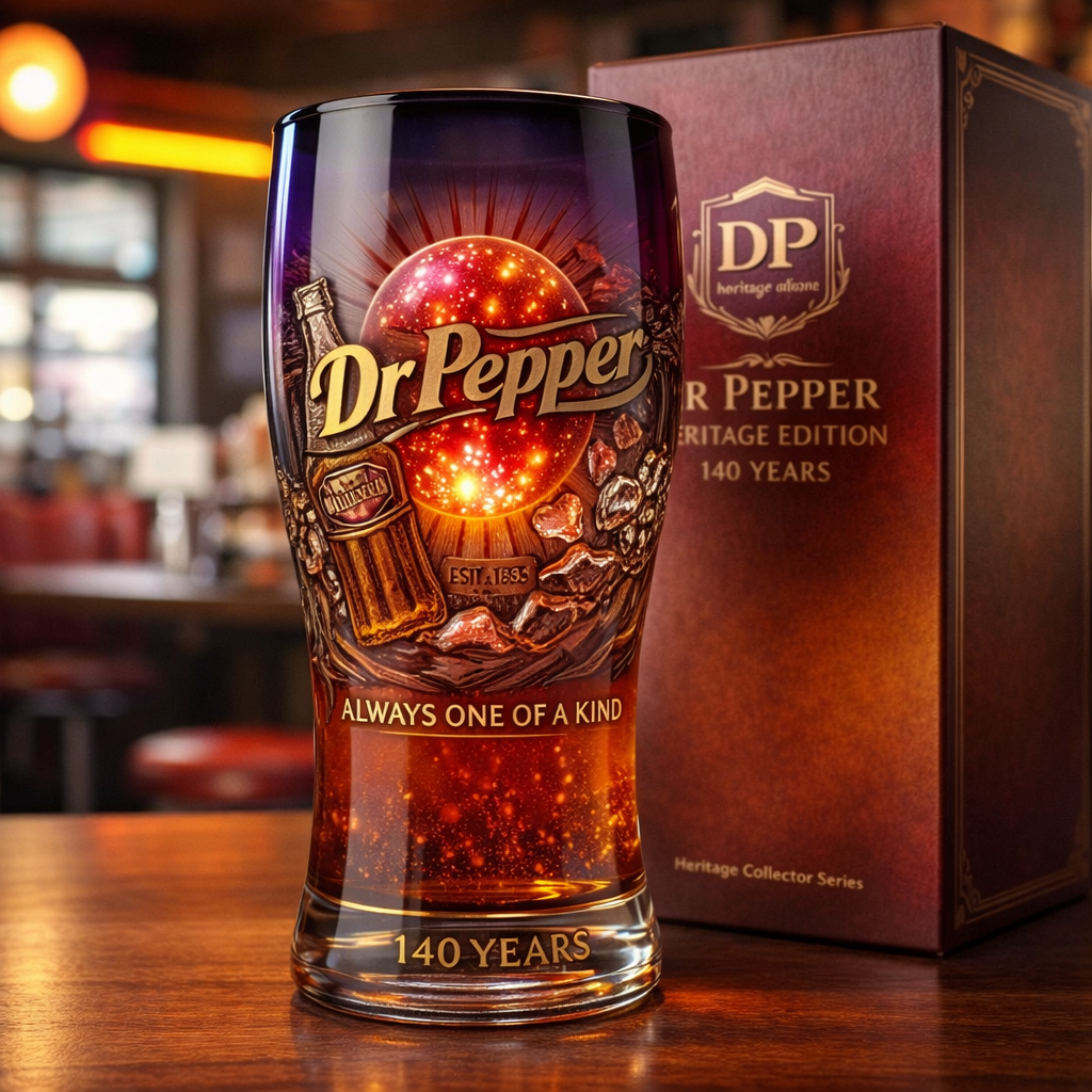 Inspiriert von der Legende von 23 typischen Geschmacks richtungen feiert dieses Premium-Sammler glas den kühnen Charakter eines amerikanischen Originals. Es ist in einem auffälligen rot-goldenen Heritage-Stil gestaltet und verfügt über ein Hochrelief wappen, kunstvolle Details und einen zeitlosen klassischen Look.