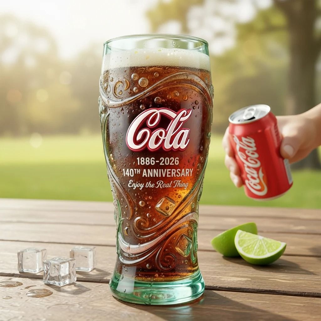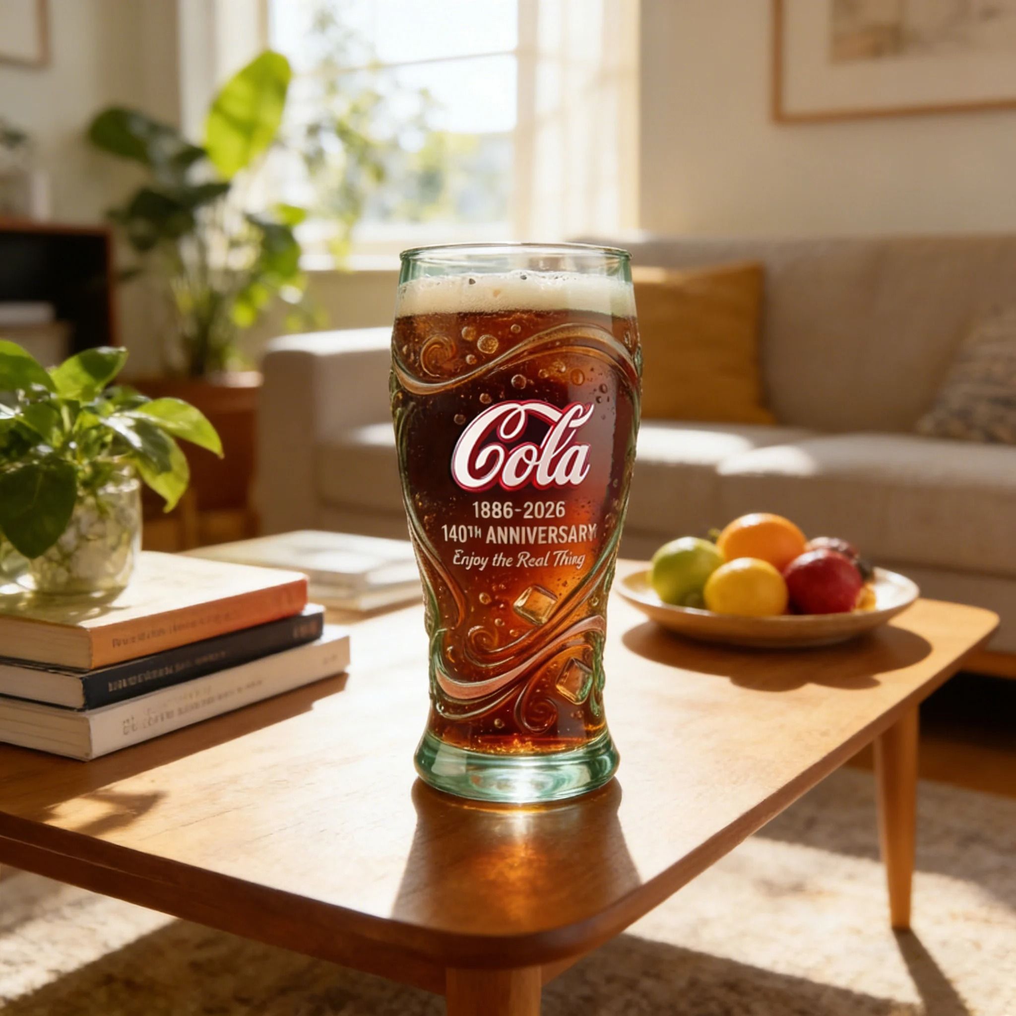 🥤😎This Cola 140th Anniversary commemorative glass uses a retro silhouette and three-dimensional embossing to truly etch time into the glass. The undulating texture of the glass is not just decoration, but a sense of history that can be seen and touched. When light sweeps across the embossed lines, the classic red logo and the flowing color of Cola intertwine, making every time you raise the glass feel like you are using a collectible from a classic era.