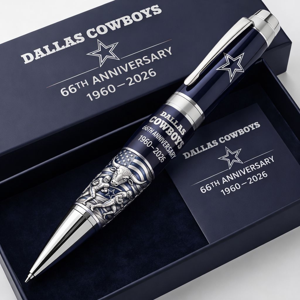 🔥Dieser Gedenkkugelschreiber zum 66. Jubiläum der Dallas Cowboys ist mehr als nur ein Stift – er ist eine Hommage an das Team, seine Fans und die Geschichte der Dallas Cowboys. Ob Sie Ihre Gedanken festhalten, Autogramme geben oder Ihre nächste Spieltagsnotiz schreiben, dieser Stift wird Sie an die legendäre Reise der Cowboys erinnern.