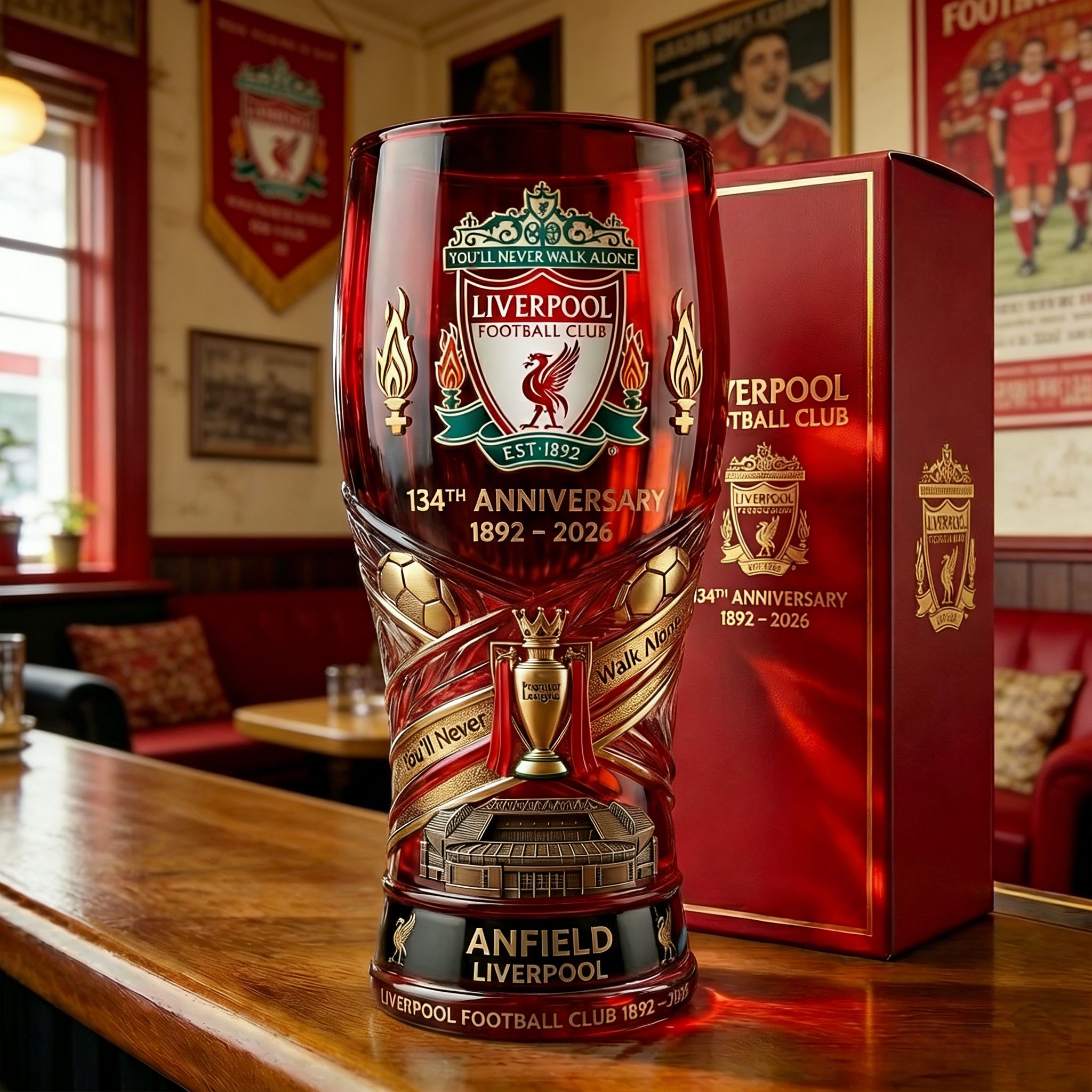⚽🍺Halten Sie ein generationenübergreifendes Vermächtnis fest mit diesem Gedenk-Pintglas in Sonderedition, das zu Ehren des 134-jährigen Jubiläums des Liverpool Football Club (1892–2026) geschaffen wurde.. Vom ohrenbetäubenden Lärm in Anfield bis hin zu Nächten, die Fußballgeschichte prägten, fängt es den Geist eines Vereins ein, der auf Glauben, Einigkeit und unvergänglichem Stolz gründet.